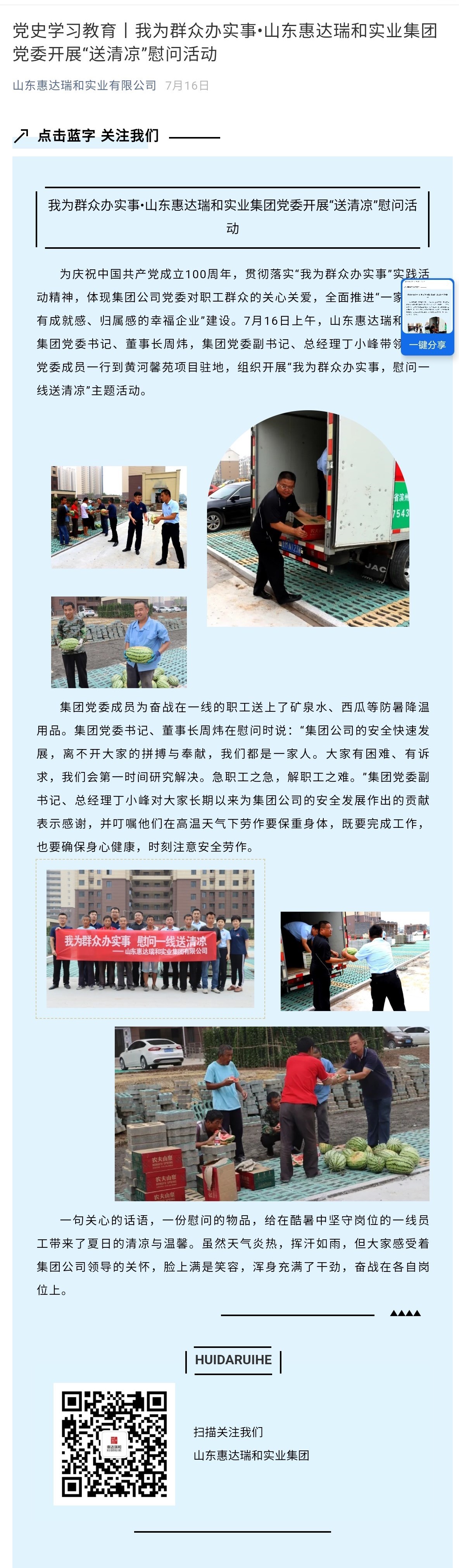 我為群眾辦實事·山東惠達瑞和實業(yè)集團黨委開展“送清涼”慰問活動