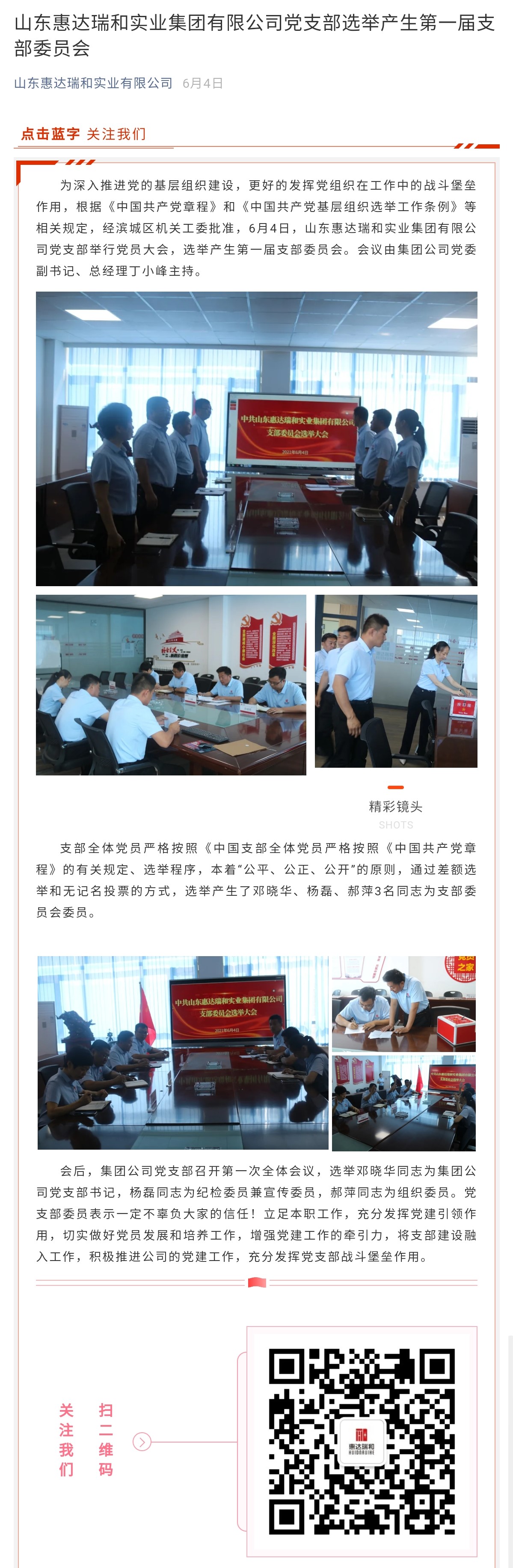 山東惠達瑞和實業(yè)集團有限公司黨支部選舉產(chǎn)生第一屆支部委員會